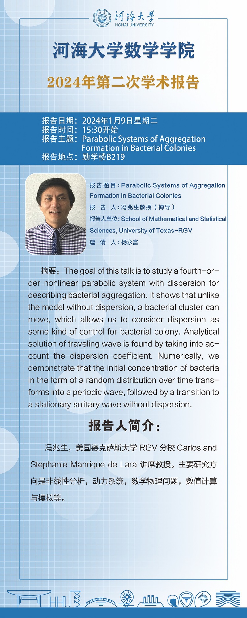 好色tv 2024年第2次学术报告:Parabolic Systems of Aggregation Formation in Bacterial Colonies