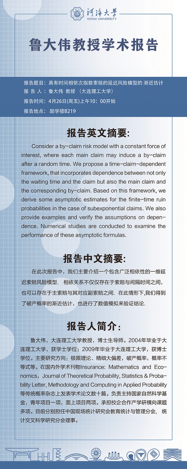 好色tv 2024年第6次学术报告:具有时间相依次指数索赔的延迟风险模型的渐近估计