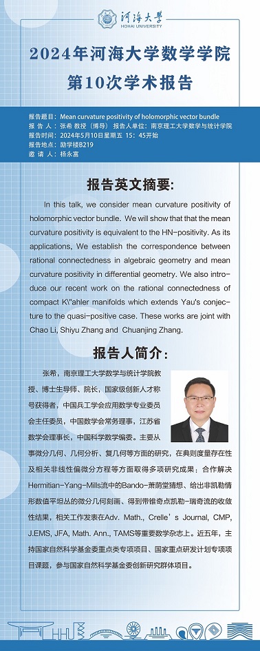 好色tv 好色tv 第10次学术报告:Mean curvature positivity of holomorphic vector bundle