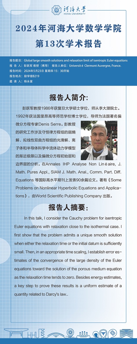好色tv 好色tv 第13次学术报告:Global large smooth solutions and relaxation limit of isentropic Euler equations