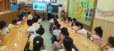 活动初始,志愿者们通过熊猫引入,通俗而详细地讲解了熊猫的有关内容,让小朋友们了解熊猫的习性和生活现状,有些小朋友还自愿扮演起可爱的熊猫,活跃了课堂气氛。紧接着,志愿者讲述了熊猫与人类的关系,呼吁小朋友们齐心协力保护国宝熊猫。