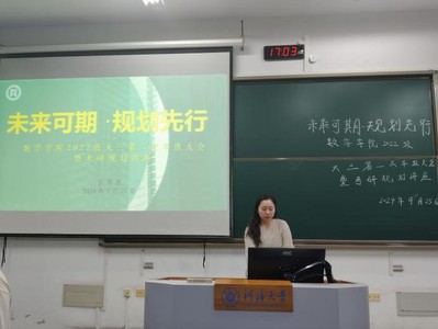 会议伊始,宫老师根据2022级本科生填写的“未来规划”调查问卷,帮助同学们分析了考研、保研、留学、就业等方向的前景,为同学们提供了具体的、适当的建议,鼓励他们积极与自身结合,探索出适合自己的选择方向和道路。