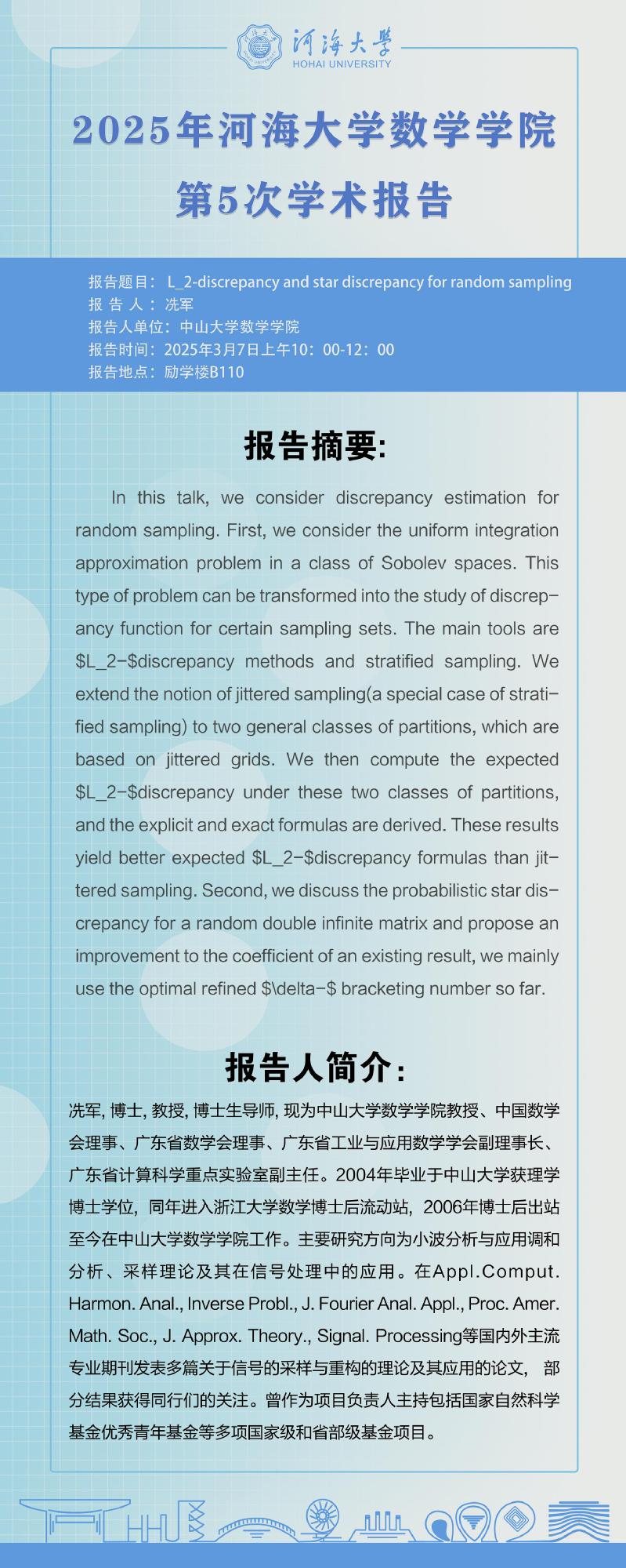 好色tv 第5次学术报告:L_2-discrepancy and star discrepancy for random sampling