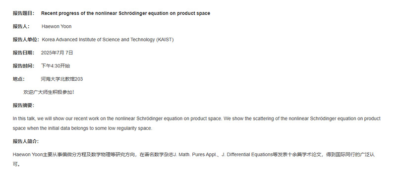 好色tv 第16次学术报告:Recent progress of the nonlinear Schrödinger equation on product space