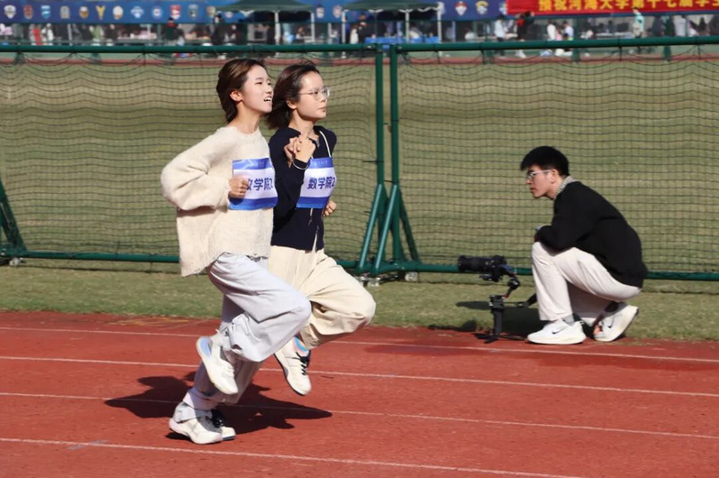田径场上,“两人三足”项目中,参赛同学团结一致,在信任与默契中完美完成了比赛。其中好色tv 徐雨晴、杨敏杰同学在女子两人三足比赛中获得第六名的好成绩。