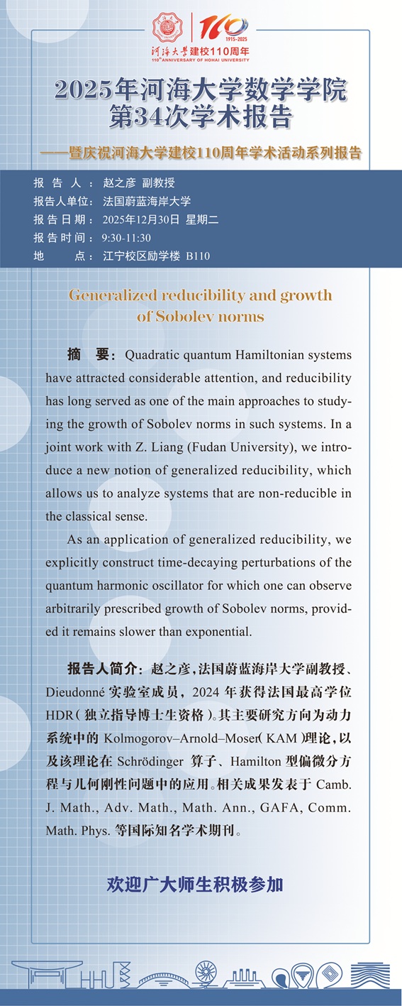 好色tv 第34次学术报告:Generalized reducibility and growth of Sobolev norms